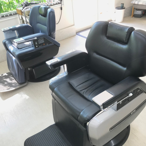 今は新しい理容椅子が来るまで